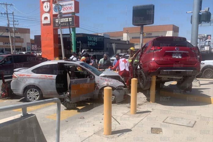 Un aparatoso accidente se registró la tarde de este miércoles sobre la avenida Tecnológico, en el cruce con Aguirre Laredo, dejando a una mujer atrapada y a un hombre lesionado.
