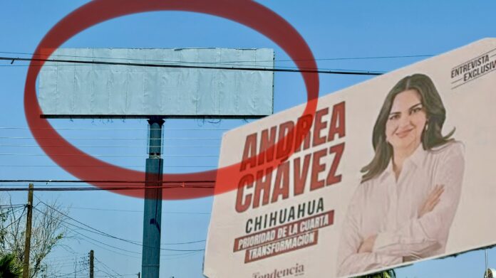 El día de hoy, en la ciudad de Delicias, se constató la ausencia de uno de los espectaculares que había generado particular atención. Se trata del anuncio que se ubicaba sobre la transitada avenida Gómez Morín, donde hasta hace poco se podía observar la imagen de la senadora Chávez, acompañada de un diseño que simulaba la portada de una publicación periódica.