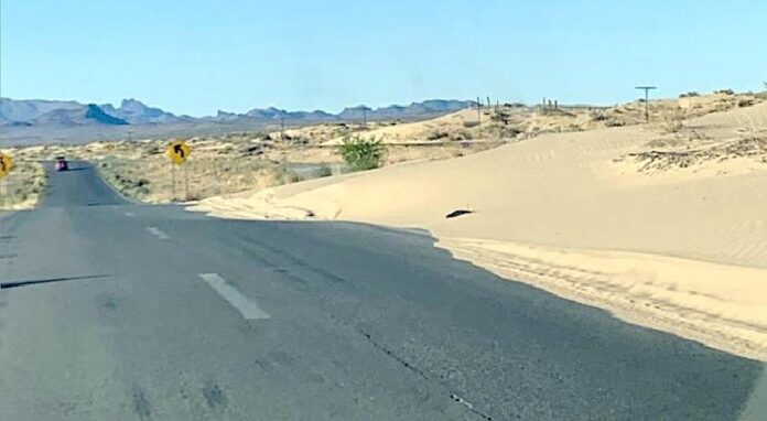 Automovilistas que transitaban por la zona alertaron sobre la presencia de grandes cantidades de arena desplazadas por el viento, las cuales reducen significativamente la visibilidad y representan un riesgo para la seguridad vial, especialmente durante la noche o en condiciones de poca iluminación.
