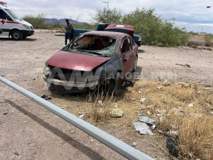 Un aparatoso accidente vial ocurrió la tarde de este domingo en la carretera que conduce a la colonia Revolución, específicamente en la peligrosa curva del acceso norte. Un automóvil Honda Civic perdió el control al tomar la curva y se impactó contra una lámpara de alumbrado público, provocando una volcadura.