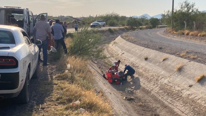 La tarde de este lunes 19 de mayo de 2025, un joven que conducía una motocicleta sufrió un accidente al caer al interior de un canal de riego ubicado en el tren de riego, cerca de la comunidad de Ejido El 10, en el municipio de Delicias. El incidente movilizó de inmediato a las corporaciones de emergencia.