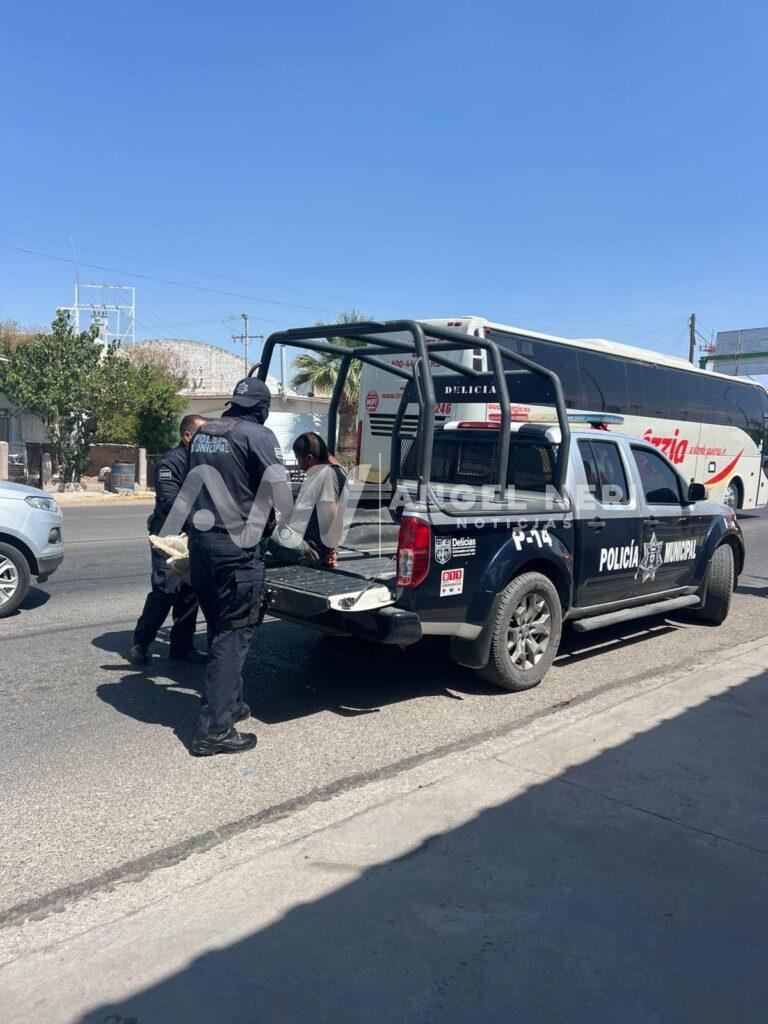 Un hombre fue detenido por elementos de Seguridad Pública Municipal en Delicias después de agredir a una mujer que se encontraba a bordo de una camioneta gris en la zona comercial de la ciudad.