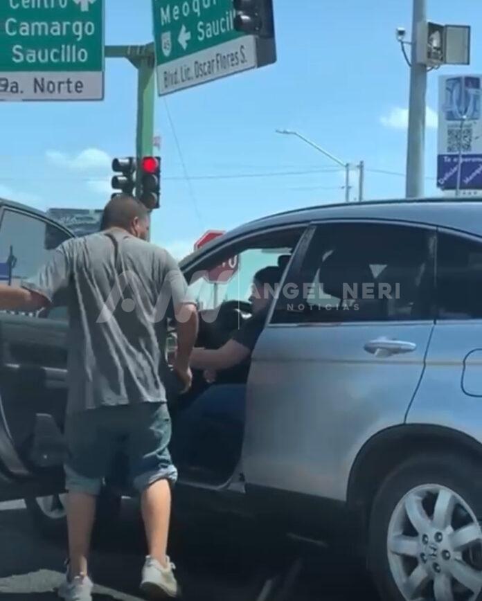 Un hombre fue detenido por elementos de Seguridad Pública Municipal en Delicias después de agredir a una mujer que se encontraba a bordo de una camioneta gris en la zona comercial de la ciudad.