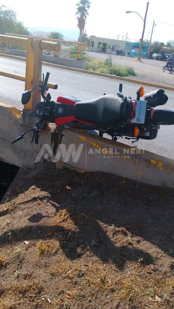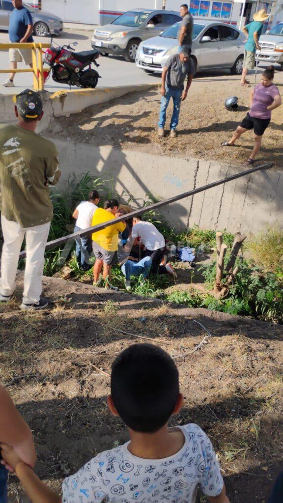 Un accidente se registró en la avenida de las Torres cuando una pareja que viajaba en motocicleta se impactó con el barandal de contención del puente y fue proyectada hacia un canal vacío.