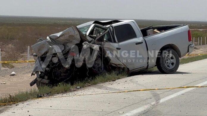 La víctima identificada como Humberto V. T., elemento activo de la SSPE, conducía una camioneta RAM cuando impactó de frente contra una Chevrolet Equinox con placas del estado de Nuevo México. En el segundo vehículo viajaban Melitón S. A. y María M. S., una pareja que también perdió la vida de manera instantánea debido al violento choque.