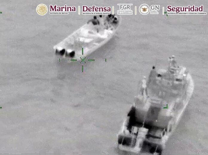 El operativo se dio tras un patrullaje de vigilancia marítima y aérea, con el que se detectó “una embarcación con cuatro tripulantes a bordo”, quienes navegaban “sin señalamientos de identificación”.