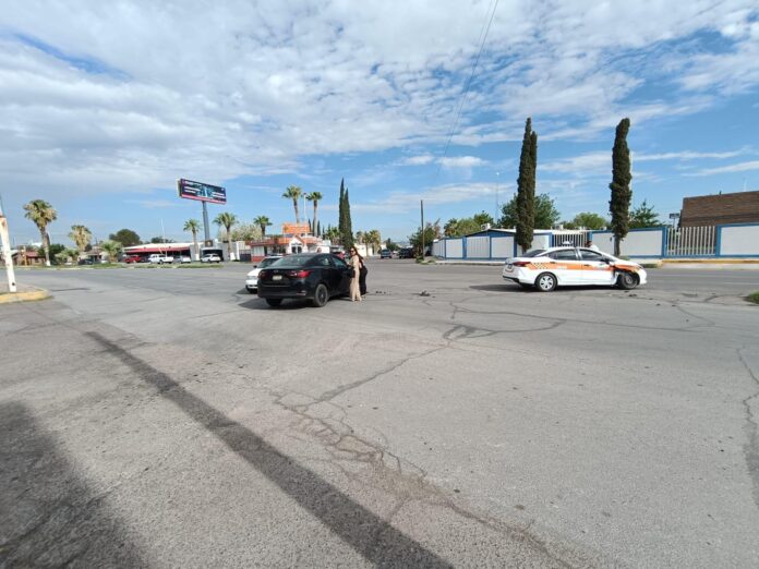 Un accidente vial se registró este martes en el cruce de la avenida Gómez Morín y Cuarta Oriente, en Delicias, Chihuahua. Un taxi modelo 2024 fue impactado por un automóvil Mazda negro, también modelo 2024, cuando circulaba por la avenida Gómez Morín.
