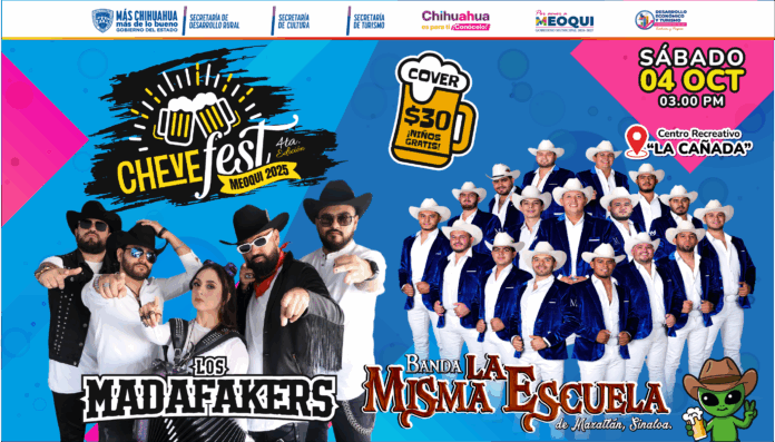 Este sábado 4 de octubre se llevará a cabo la 4ta edición del CheveFest Meoqui 2025, un evento 100% familiar que contará con Corredor Gastronómico, Feria de Emprendedores, Cluster Cervecero, cuadros culturales y la presentación de Los Madafakers y Banda La Misma Escuela, todo esto en el Centro Recreativo La Cañada, lugar donde ya se tiene todo listo para recibir a las familias de Meoqui y todo el estado a partir de las 3 de la tarde.
