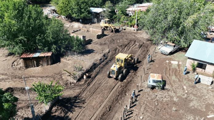 Por instrucción de la gobernadora Maru Campos, la Secretaría de Comunicaciones y Obras Públicas (SCOP) trabaja para apoyar a las familias afectadas en la colonia Juárez, luego de las fuertes lluvias presentadas en días pasados en Casas Grandes.