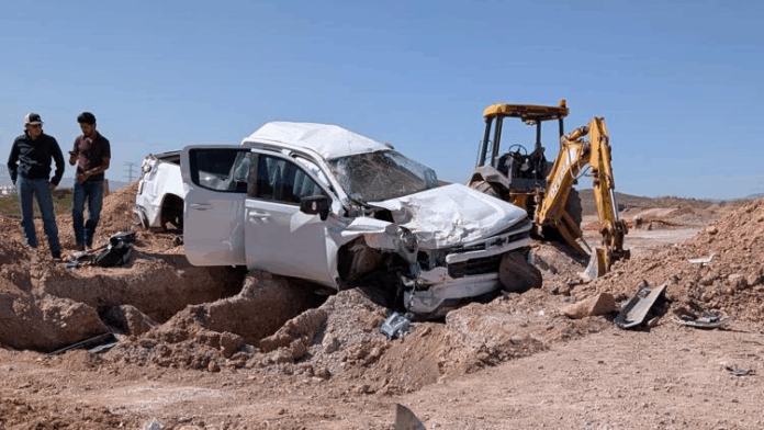 Un conductor de aproximadamente 35 años de una pickup Chevrolet Cheyenne blanca perdió el control al circular de sur a norte por la calle Zeus, cerca del camino a la presa El Rejón, en una curva pronunciada.