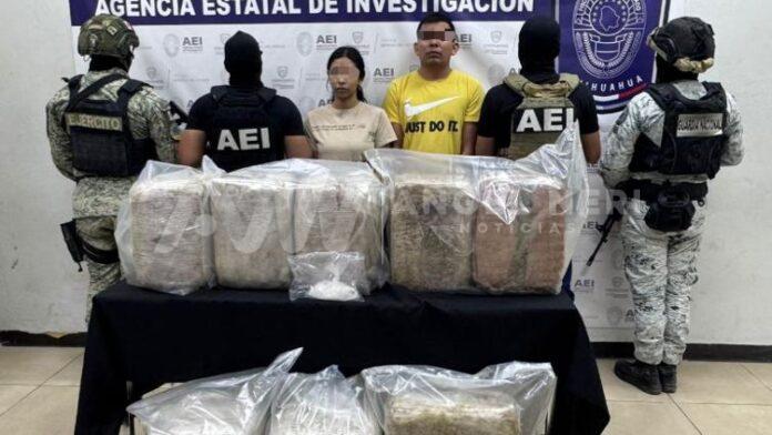 En un operativo conjunto entre la Agencia Estatal de Investigación, el Ejército Mexicano y la Guardia Nacional, fueron detenidos un hombre y una mujer en posesión de una gran cantidad de droga en Ciudad Juárez.