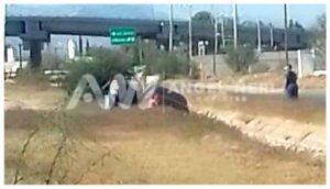 Este lunes se registró un accidente vial tipo salida de camino en el sector norte, a la altura del motel México. El incidente involucró a un automóvil Nissan Versa con placas del estado de Chihuahua, el cual terminó con medio auto dentro de un canal luego de que su conductor perdiera el control de la unidad por causas que aún se investigan.