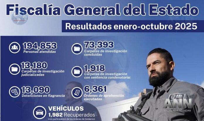 La institución también reportó la atención a 194 mil 853 personas, la conclusión de 73 mil 393 carpetas de investigación, 13 mil 180 casos judicializados y más de mil 900 sentencias condenatorias en el mismo periodo.