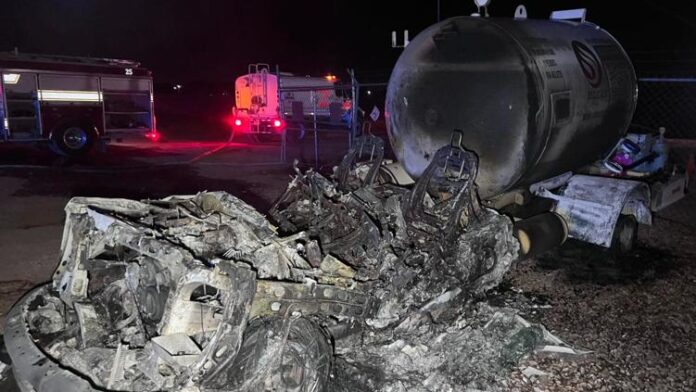 De acuerdo con información recabada en el lugar, en el sitio se encontraban ocho pipas con capacidad aproximada de 4 mil 500 litros cada una; sin embargo, siete de las unidades fueron alcanzadas por el fuego y quedaron completamente calcinadas, mientras que solo una logró quedar intacta. Aunque pertenecían a la planta Gas Noble, las pipas estaban rotuladas con la marca DELGAS.